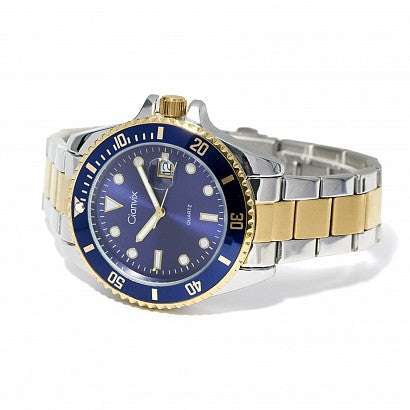 orologio in acciaio con cassa bicolore e quadrante blu