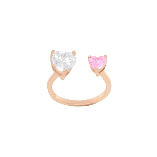 Anello da Donna in Argento Rosato Con Cristalli Cuore Bianco e Rosa