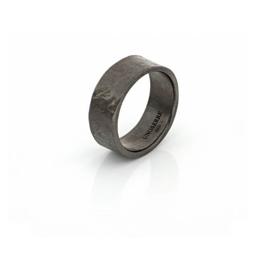 Anello da uomo in argento brunito, lavorazione artigianale e finitura satinata.
