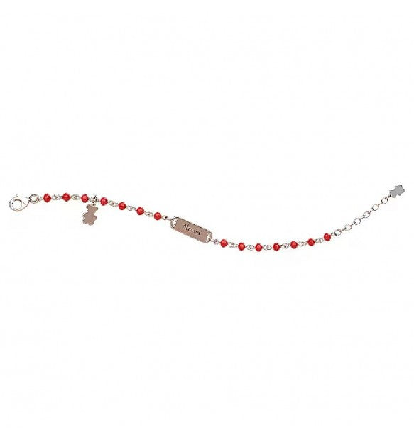 Bracciale di Nanan con targhetta da bambino con decorazioni rosse con ciondolo orsetto in argento 925. La referenza è NAN0295.