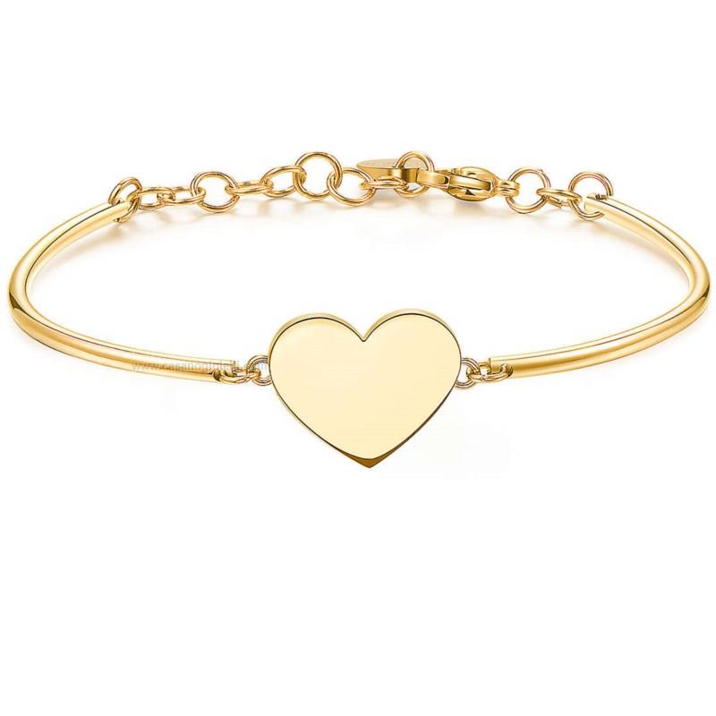 Bracciale da donna di Brosway della collezione chakra. Bracciale in acciaio e pvd oro con medaglietta a cuore. Chiusura a moschettone e diametro 70 mm. La referenza è bhk304