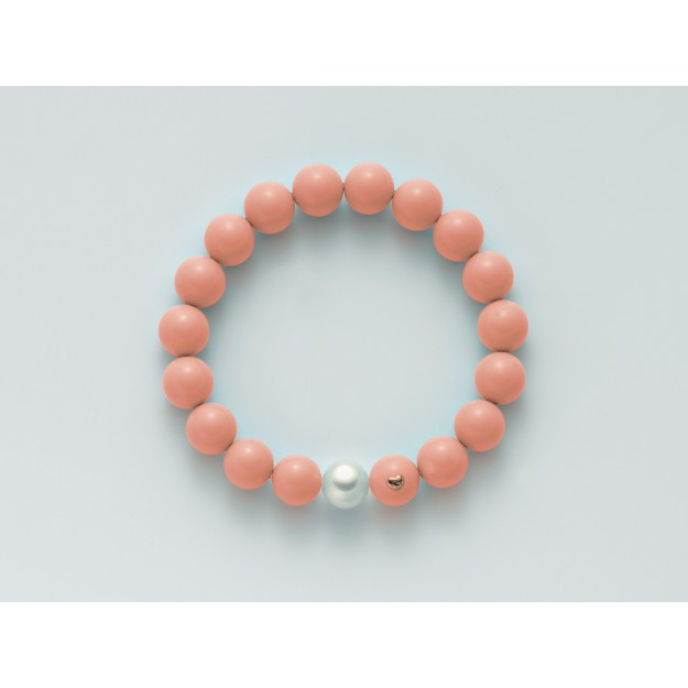 Bracciale da donna Miluna collezione Terra e Mare. Bracciale elastico composto da sfere di agglomerato di corallo rosa di diametro 10mm e una perle coltivata di colore bianco di diametro 9,5-10. IL gioiello Miluna viene venduto con scatola, shopper originale e garanzia di qualità.