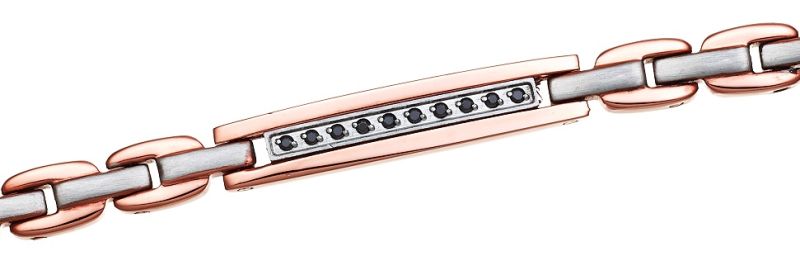 Bracciale zancan in acciaio placcato rosè e spinelli neri - uhb076