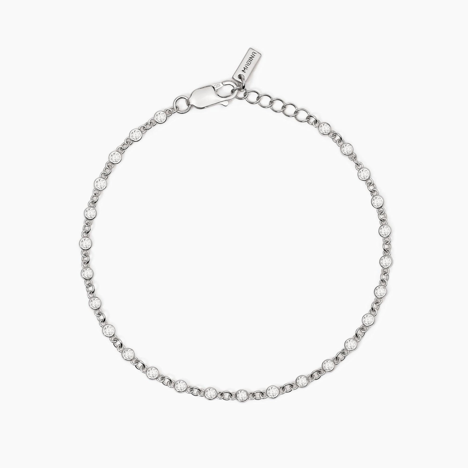 Bracciale da uomo di Mabina della collezione Skyline. Bracciale in argento 925/°°° rodiato con zirconi diametro: 2 mm, lunghezza regolabile da 18.5 a 20.5 cm. La refernza è 533834