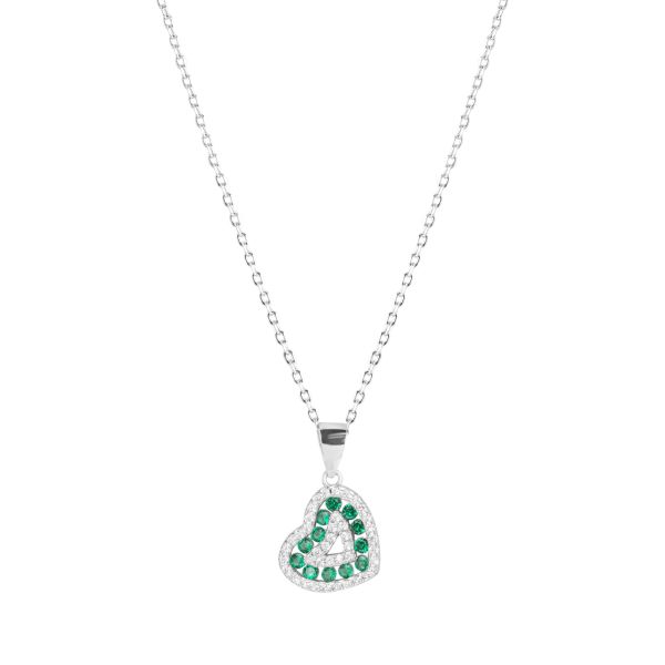 Collana Da Donna in Argento Rodiato Cuore Pendente con Zirconi verdi e Bianchi
