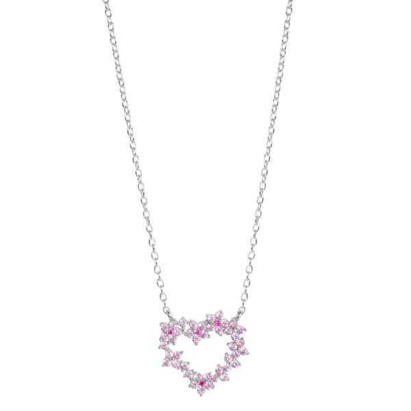 Collana da Donna In Argento Rodiato con Pendente cuore composto da Cristalli Kunzite e Tormalina