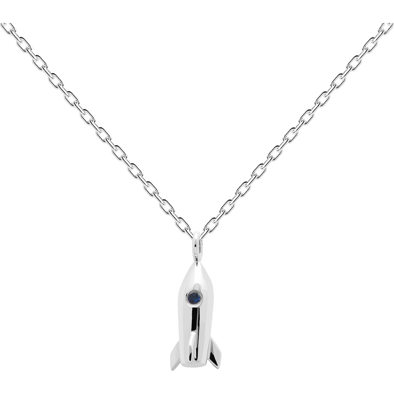Collana da bambina della collezione les petities di PDPaola. Collana con pendente a forma di razzo realizzata in argento sterling 925 di colore argento. Lunghezza: regolabile da 35 a 45 cm.