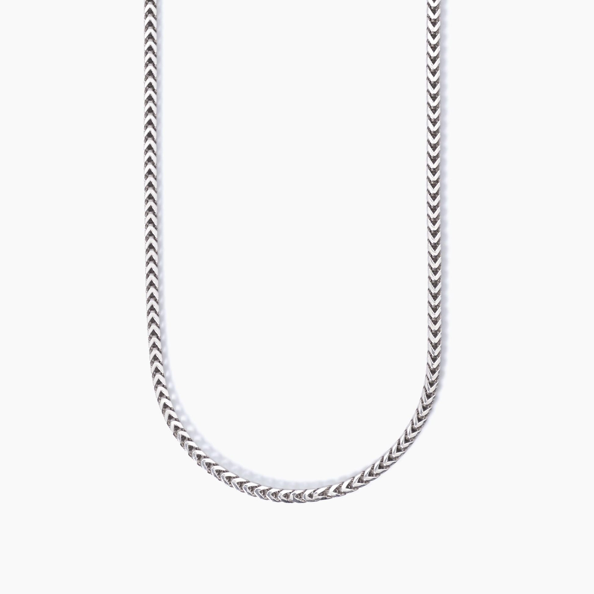 Collana in argento rodiato con catena spigata.