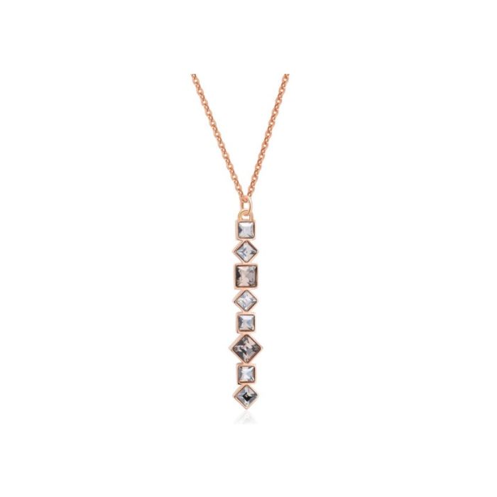Collana da donna di Brosway della collezione symphonia. Gioiello realizzato in acciaio con rifinitura oro rosa con cristalli crystal grigi. Dimensione: 460 mm.