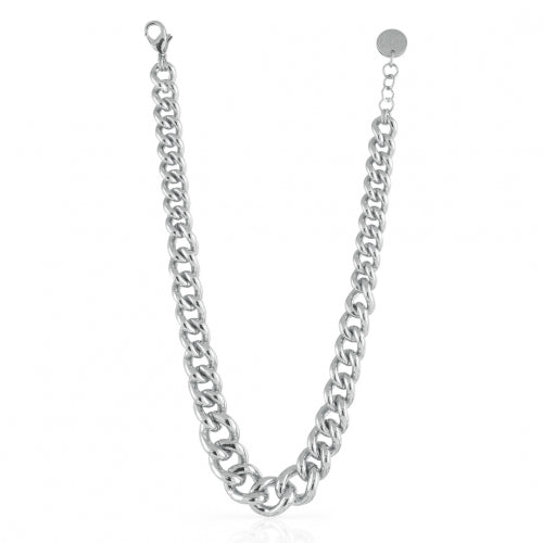 Unoaerre Collana in bronzo argentato con catena grumetta a scalare