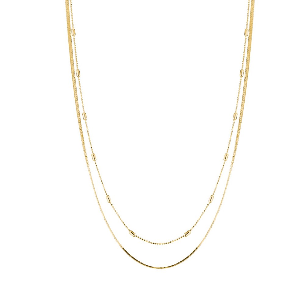 La Collana multifilo pop - Pop Up presenta una lunghezza totale di 40 cm, estendibile di ulteriori 5 cm grazie alla catena di prolungamento, permettendo una vestibilità personalizzata. Realizzata nella raffinata colorazione argento dorato, questa collana unisce eleganza e versatilità, ideale per arricchire con stile ogni outfit.