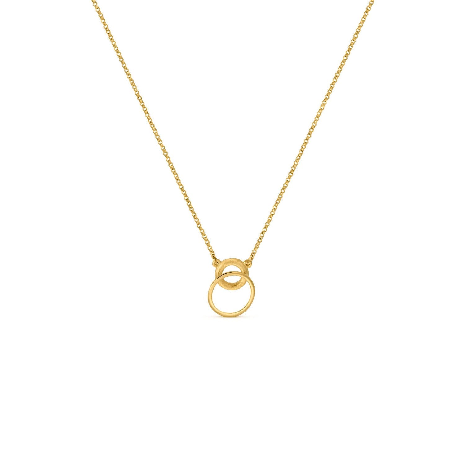 Collana con piccolo pendente in metallo placcato oro 24 K opaco. Design ispirato alle stravaganti forme circolari sovrapposte. Catena placcata oro con chiusura a moschettone e prolunga. Il gioiello viene venduto e spedito con astuccio originale come previsto dal brand.