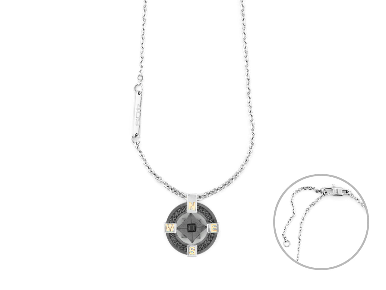Collana Uomo 4US acciaio con bussola elementi oro 18k. Misura regolabile. Collezione autunno inverno 24.