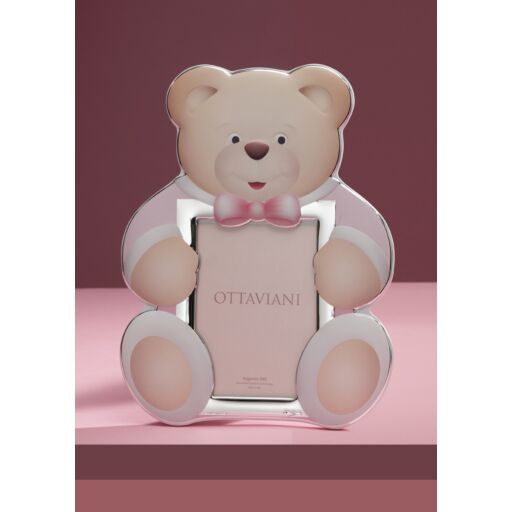 Portafoto sagomto orsettona bimba di Ottaviani. Portafoto sagomato bimba di colore argento e rosa. Dimensioni: 7,4"x0,5"x9,6" cm.