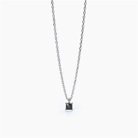 Collana da uomo di Mabina, in argento, della collezione Punto di Vista, rodiato con catena forzatina e pendente con zircone nero 4x4 mm, lunghezza cm 50. La referenza è 553572