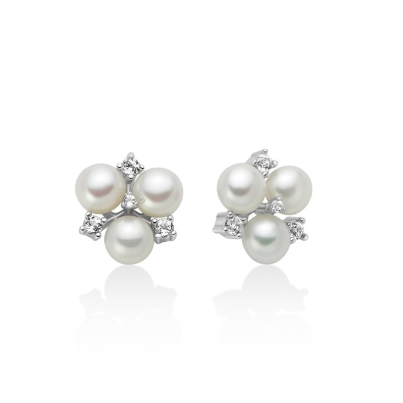 Orecchini Miluna modello orecchini della collezione Unica in argento 925/1000 con 6 Perle vere Oriente Colore Bianco 5-5.5 e nr 8 topazi naturali bianchi taglio rotondo 0.27 mm Orecchini spediti con confezione e garanzia originale Miluna