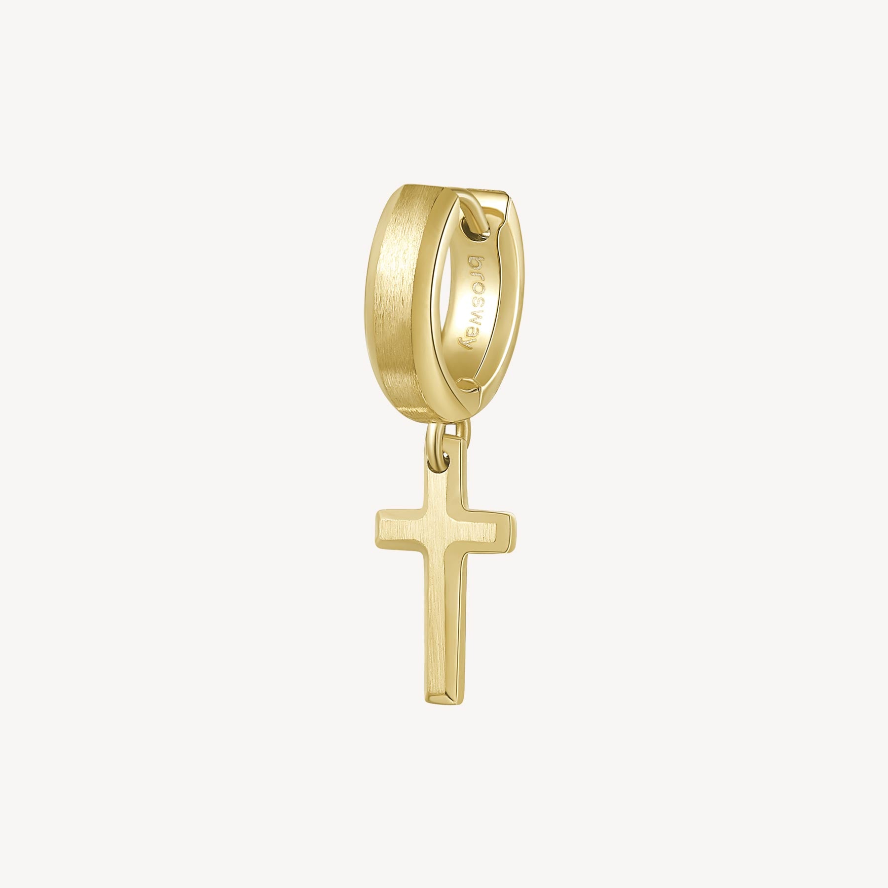 Orecchino Da Uomo Di Brosway Della Collezione Ink. Orecchino Ink In Acciaio 316L, Finitura Oro, Con Pendente Croce. Lunghezza: 28 Mm. Peso: 2,1 G.