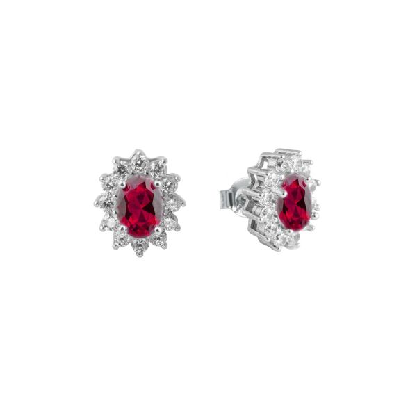 Orecchini Lobo Donna Argento Pietra Rossa