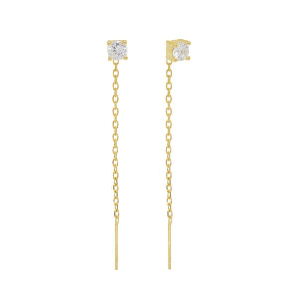 Orecchini Da Donna in Argento Dorato con Punto Luce Bianco da 4 mm e Catena Gold da 5 cm