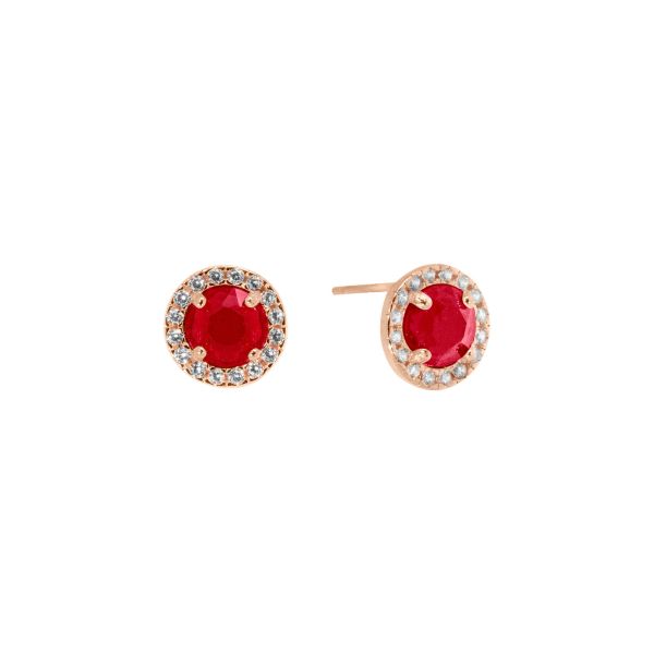 Orecchini in Argento Rosato da Donna cristallo rosso Rubino contornato da zirconi Bianchi