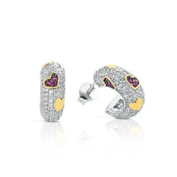 Orecchini da donna di Roberto Giannotti, della collezione Microlighting. Orecchini con cuori in argento, zirconi rossi e bianchi, diametro orecchino 1,5 cm. La referenza è GIA372