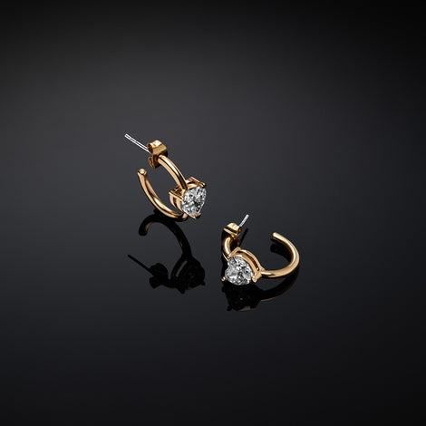 Orecchini da donna a cerchio della collezione Chiara Ferragni Brand First Love. Il gioiello con placcatura rodio colore gold ha un diametro di 1,8cm con chiusura a farfallina. Gli orecchini a cerchio sono impreziositi da uno zircone a taglio cuore di colore bianco