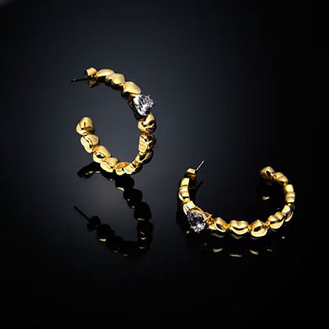 Orecchini Chiara Ferragni Brand Cuoricino. Orecchini a cerchio di dimensione 4cm di colore oro. Ha cuoricini oro giallo ed uno di zircone. Semplici e raffinati, adatti per ogni occasione.