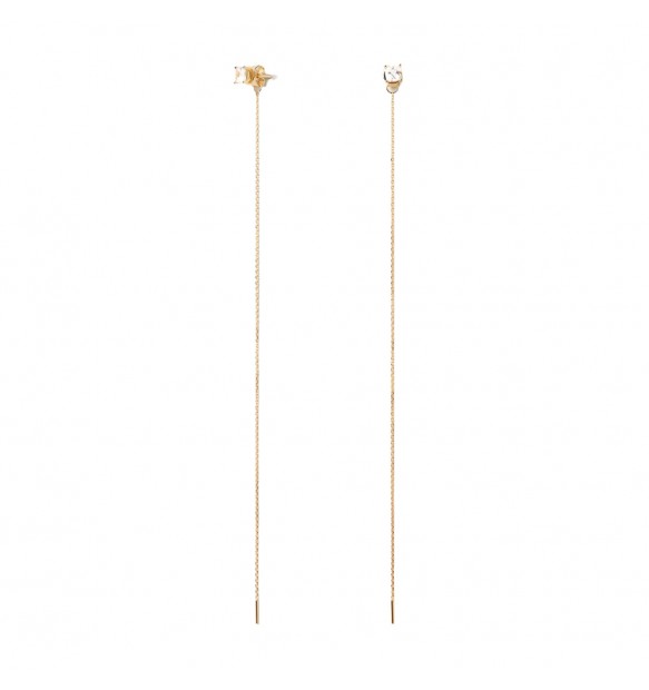 Orecchini da donna di PDPaola della collezione The New Essentials. Orecchini pendenti in argento 925 placcati oro 18k e impreziositi da zircone bianco. Il peso è di circa 2,83gr. La referenza è AR01-997-U