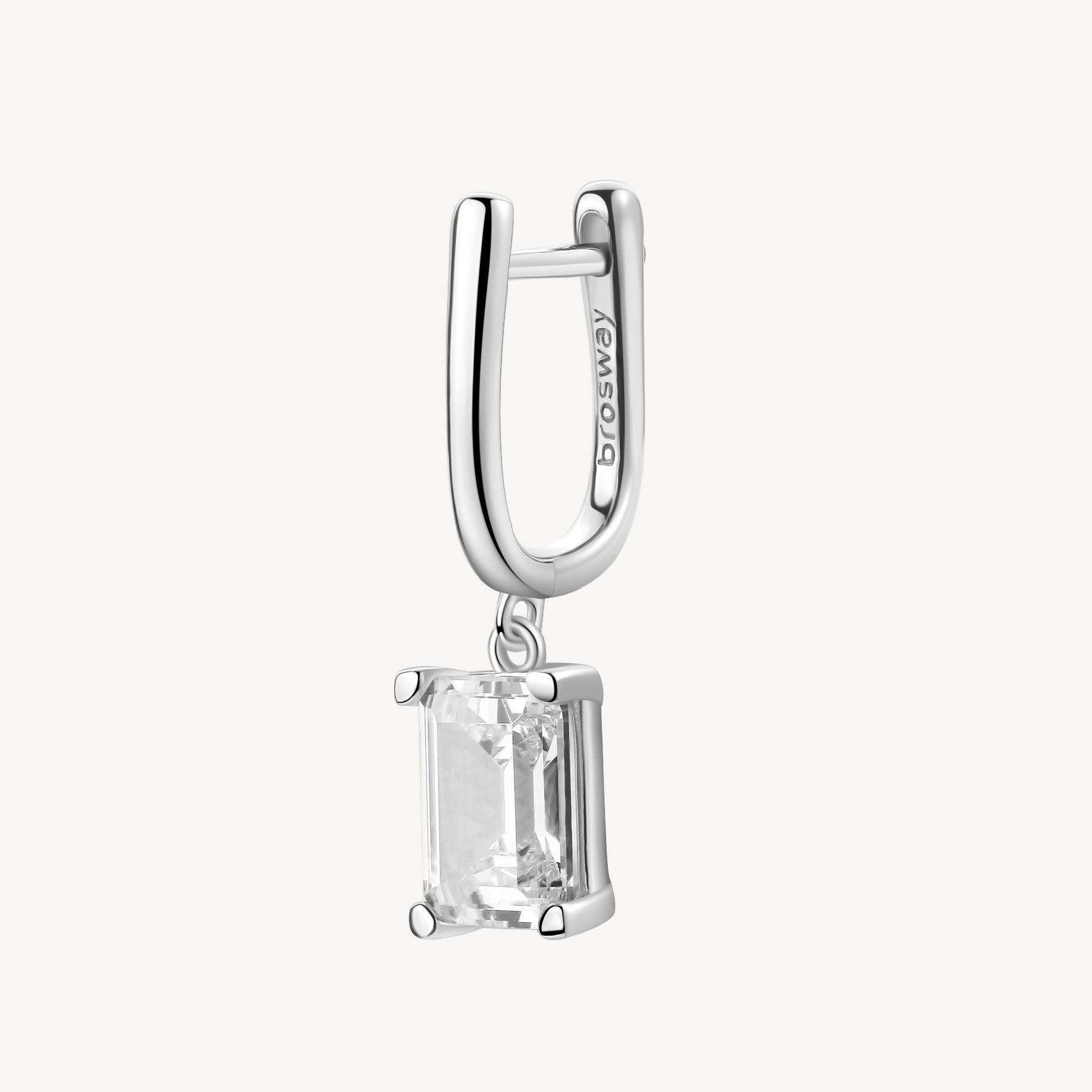 Orecchino singolo pendente in argento rodiato 925% con baguette cubic zirconia.