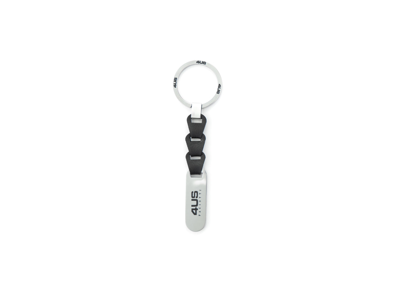 Portachiavi Uomo 4US acciaio e pelle nera.