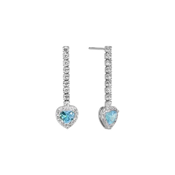 Orecchini Tennis in Argento Rodiato da Donna Cristalli Bianchi e Cuore Acquamarina